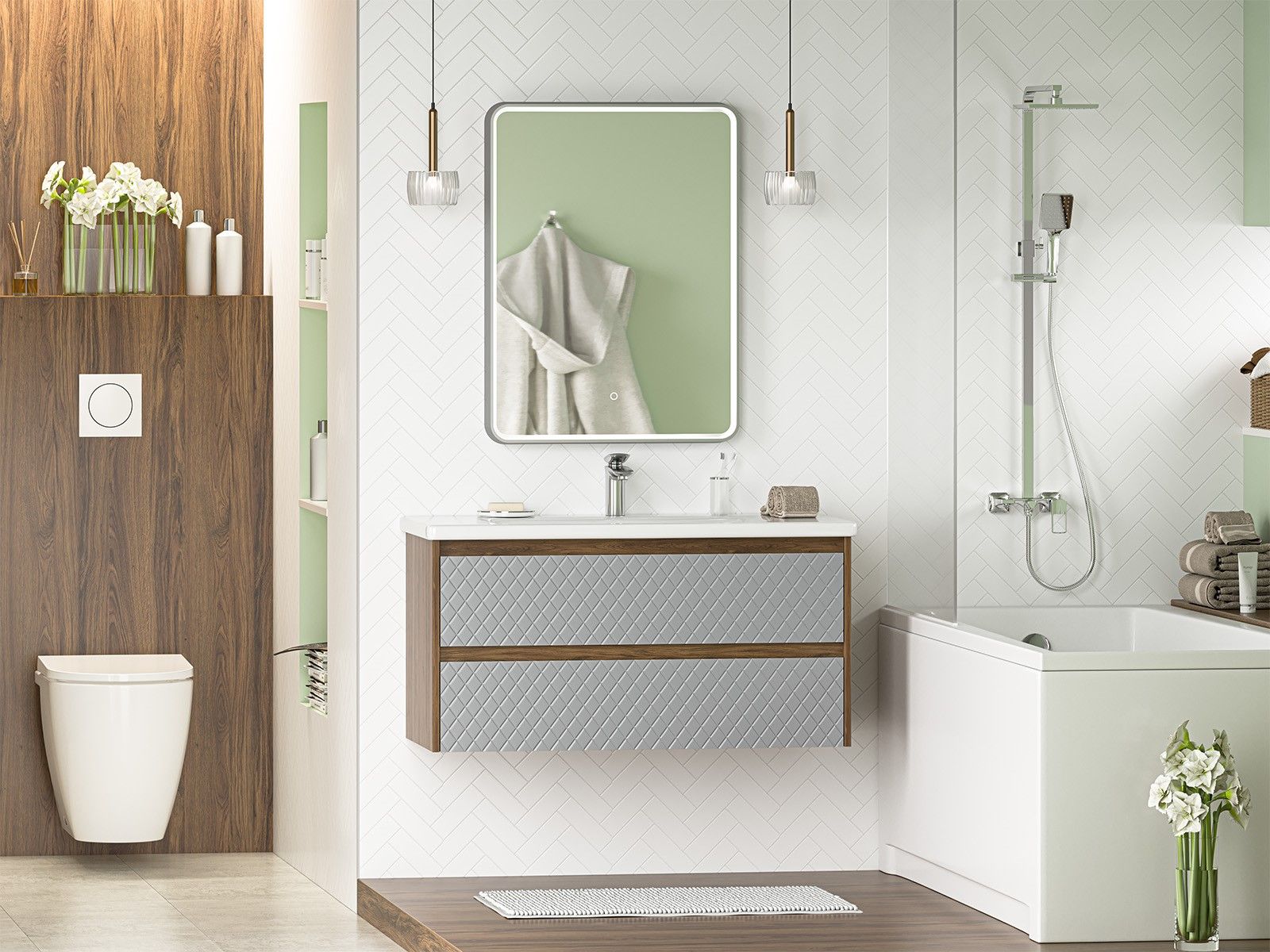 Подвесная тумба в ванную комнату – это не просто элемент мебели, а подлинный акцент в интерьере, который сочетает в себе функциональность и стиль. Она придаёт помещению лёгкость и воздушность, освобождая пространство на полу и создавая иллюзию большего объёма.Функциональные особенности таких тумб варьируются от наличия выдвижных ящиков до встроенных систем хранения, которые помогают организовать пространство ванной комнаты. Важным аспектом является также возможность выбора различных цветовых решений и отделок, что позволяет гармонично вписать тумбу в любой интерьер – от классического до ультрасовременного.С помощью подвесной тумбы ванная комната становится не только более удобной, но и эстетически привлекательной, создавая атмосферу уюта и роскоши.