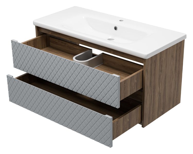 Подвесная тумба под раковину Brevita Chester CHE-09100-49502Я 100см серый/дуб Чарльстон темно-коричневый
