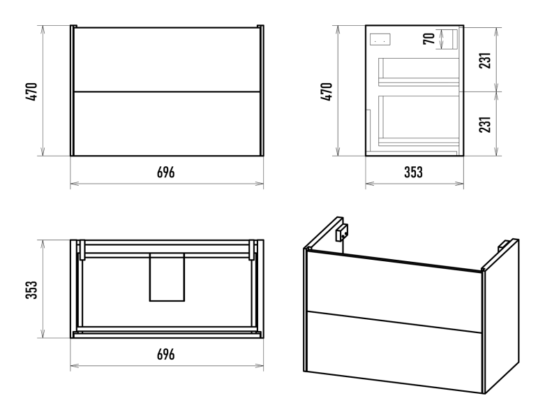 В комплекте с тумбой идёт раковина Brevita Avila 70