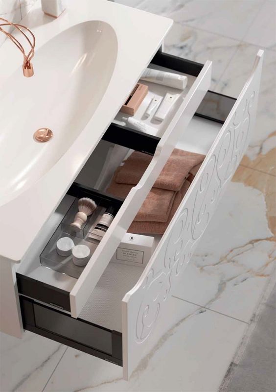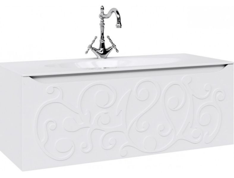 Подвесная тумба под раковину Clarberg Elegance 120 EL0112, с двойным выдвижным ящиком, с ручкой-выемкой. Эргономичность и гармония. Изысканный и нежный тисненый узор создает романтическое настроение.Технические данные:Цвет: белый матовый.