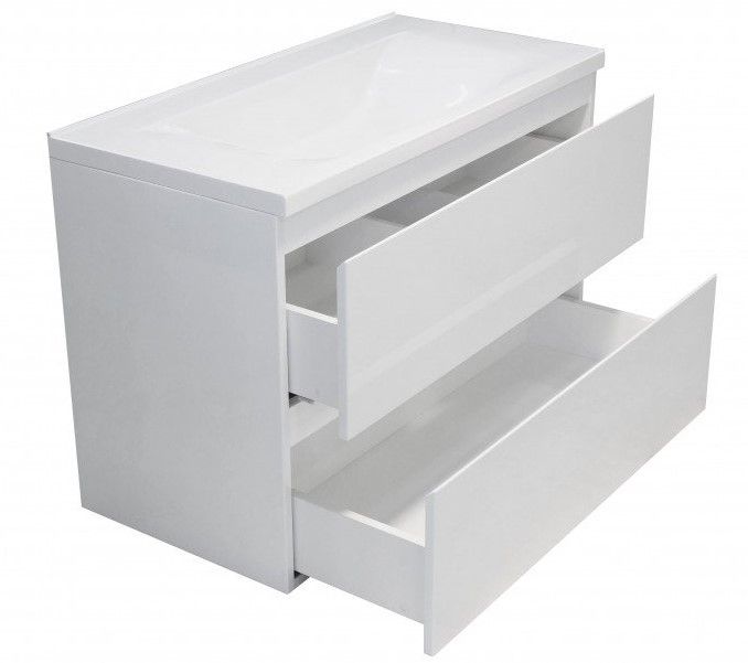 Современный дизайн серии Bali создан для ценителей минимализма. Четкие геометрические формы, бесшумное закрывание ящиков, вместительная тумба с верхним и нижним ящиками создает дополнительное пространство, где будут надежно скрыты от влаги банные принадлежности.