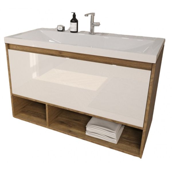 Подвесная тумба под раковину Эстет Monaco Wood ФР-00011317 100см один ящик белый/дуб рустикальный