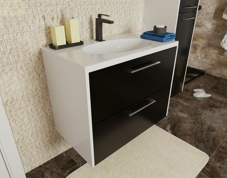 Коллекция Vegas разработана в современном стиле с учетом комфорта и функциональности. За счет вкладных фасадов мебель возможно выполнить в двухцветном исполнении абсолютно в любом сочетании (по каталогу RAL). Vegas дает возможность исполнить индивидуальное решение. Тумба укомплектована раковиной из литьевого мрамора с геометрическими формами. Сама раковина прямоугольная, чаша овальная, что дает комплекту дополнительную изысканность. В тумбе располагаются 2 ящика, максимально удобные для хранения и функционального размещения.