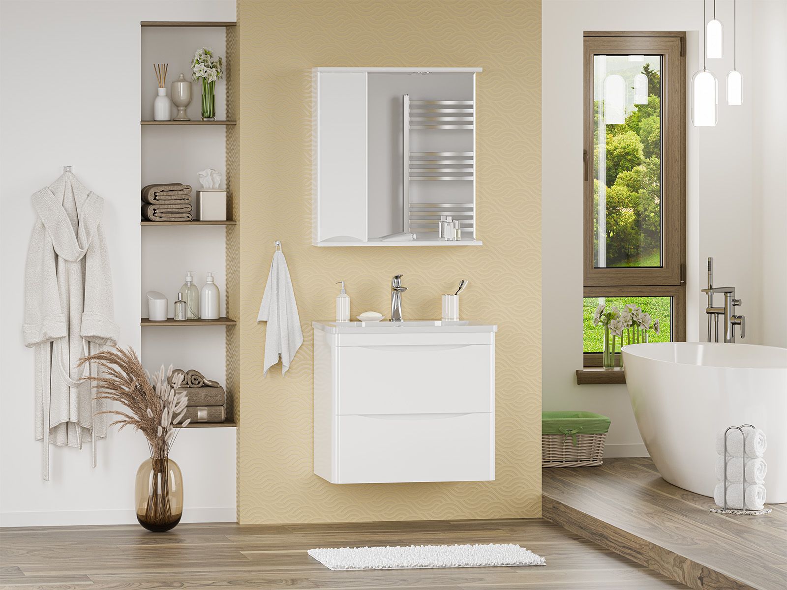 Подвесная тумба в ванную комнату – это не просто элемент мебели, а подлинный акцент в интерьере, который сочетает в себе функциональность и стиль. Она придаёт помещению лёгкость и воздушность, освобождая пространство на полу и создавая иллюзию большего объёма.Функциональные особенности таких тумб варьируются от наличия выдвижных ящиков до встроенных систем хранения, которые помогают организовать пространство ванной комнаты. Важным аспектом является также возможность выбора различных цветовых решений и отделок, что позволяет гармонично вписать тумбу в любой интерьер – от классического до ультрасовременного.С помощью подвесной тумбы ванная комната становится не только более удобной, но и эстетически привлекательной, создавая атмосферу уюта и роскоши.
