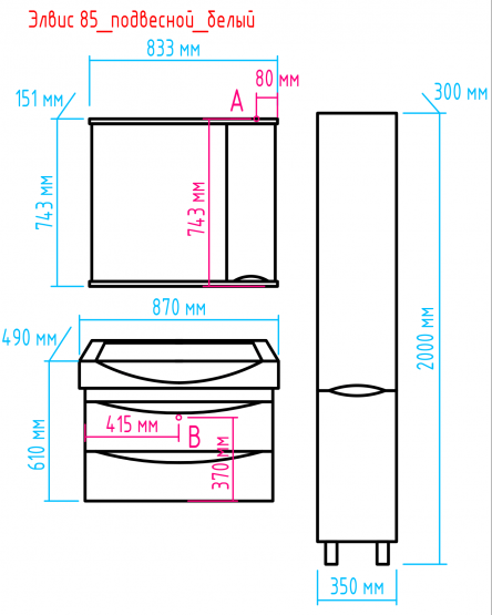Подвесная тумба под раковину Misty Элвис 85см белый