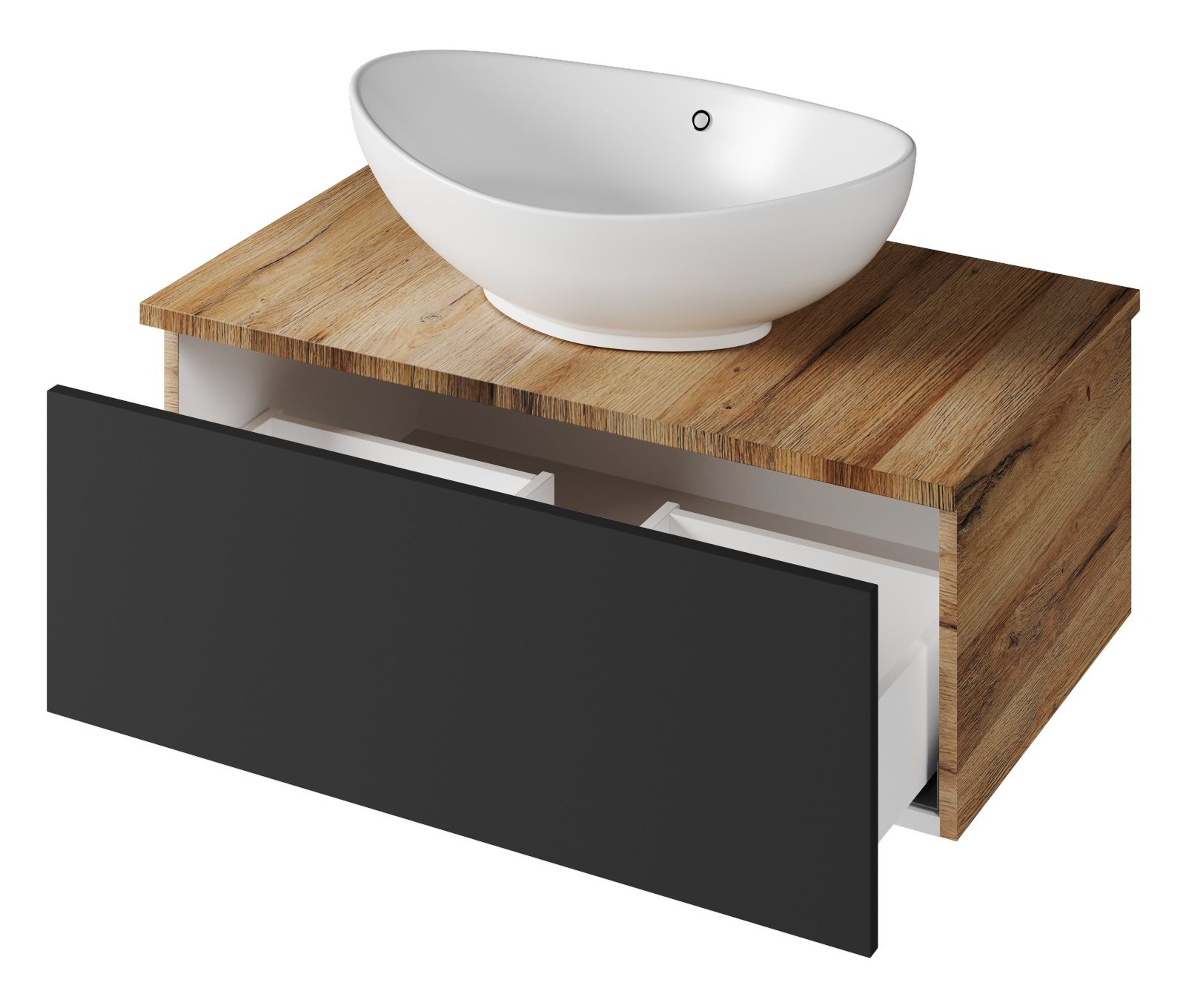 Подвесная тумба под раковину Misty Ива 80см графит/дуб Вотан