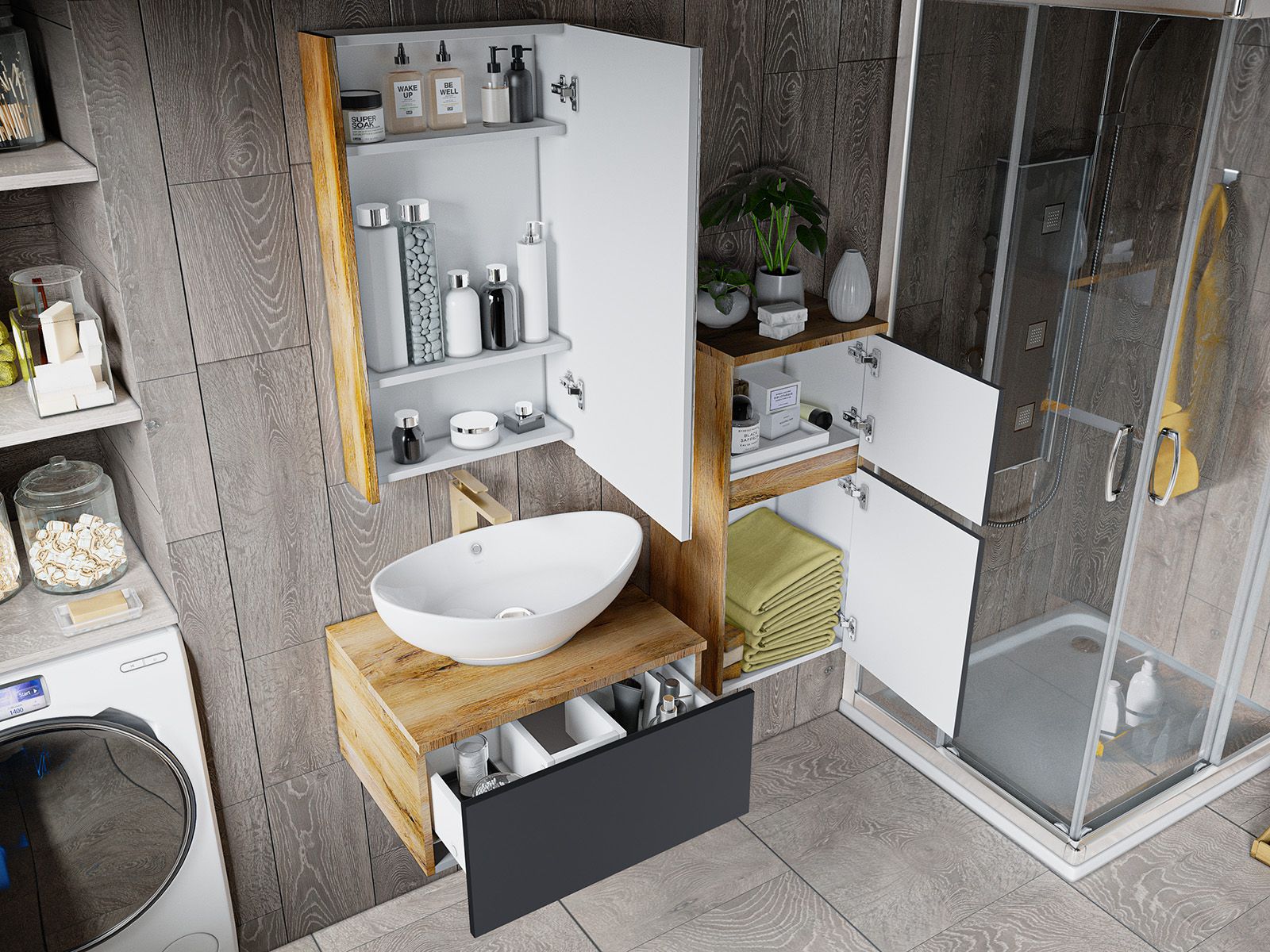 Подвесная тумба в ванную комнату – это не просто элемент мебели, а подлинный акцент в интерьере, который сочетает в себе функциональность и стиль. Она придаёт помещению лёгкость и воздушность, освобождая пространство на полу и создавая иллюзию большего объёма.Функциональные особенности таких тумб варьируются от наличия выдвижных ящиков до встроенных систем хранения, которые помогают организовать пространство ванной комнаты. Важным аспектом является также возможность выбора различных цветовых решений и отделок, что позволяет гармонично вписать тумбу в любой интерьер – от классического до ультрасовременного.С помощью подвесной тумбы ванная комната становится не только более удобной, но и эстетически привлекательной, создавая атмосферу уюта и роскоши.