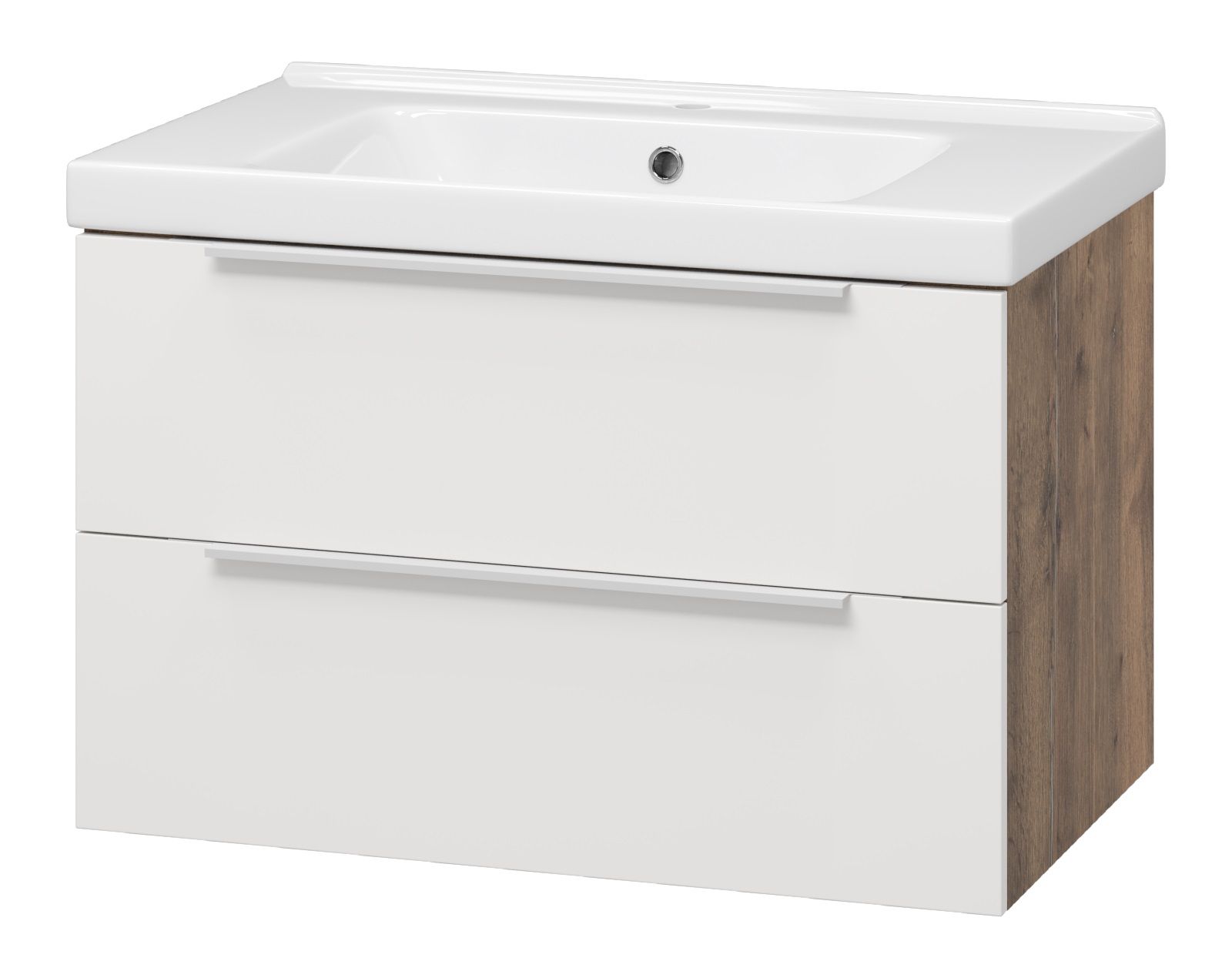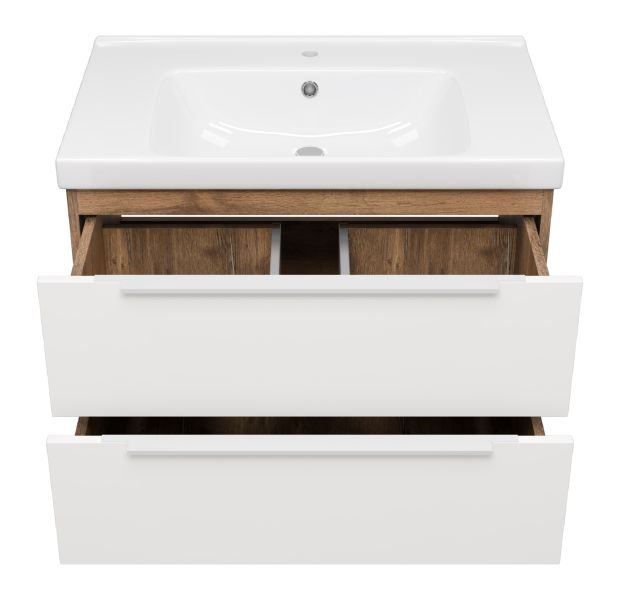 Подвесная тумба под раковину Misty Карат 80см белый/дуб Галифакс олово
