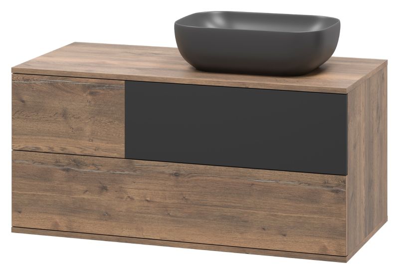 Подвесная тумба под раковину Misty Коломбо 100см правая дуб Галифакс/антрацит