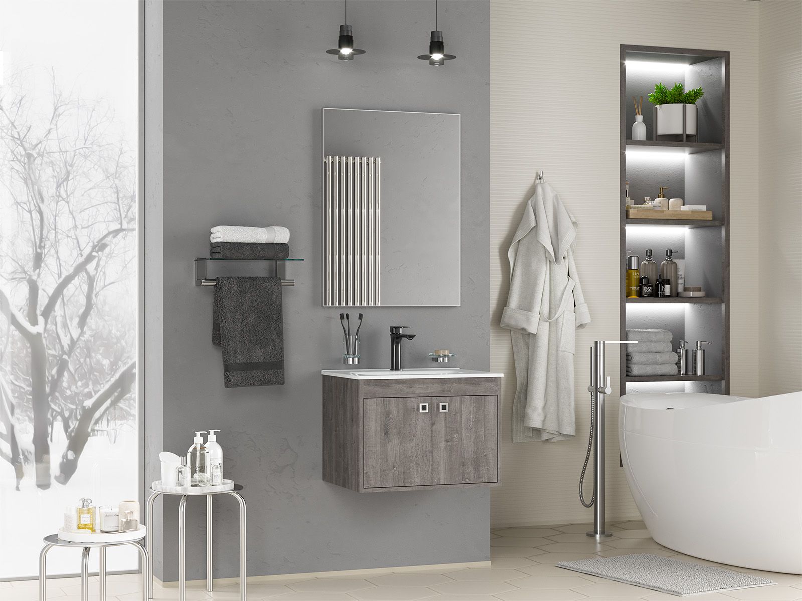 Подвесная тумба под раковину Misty Пайн 60см дуб Уайт-Ривер серо-коричневый