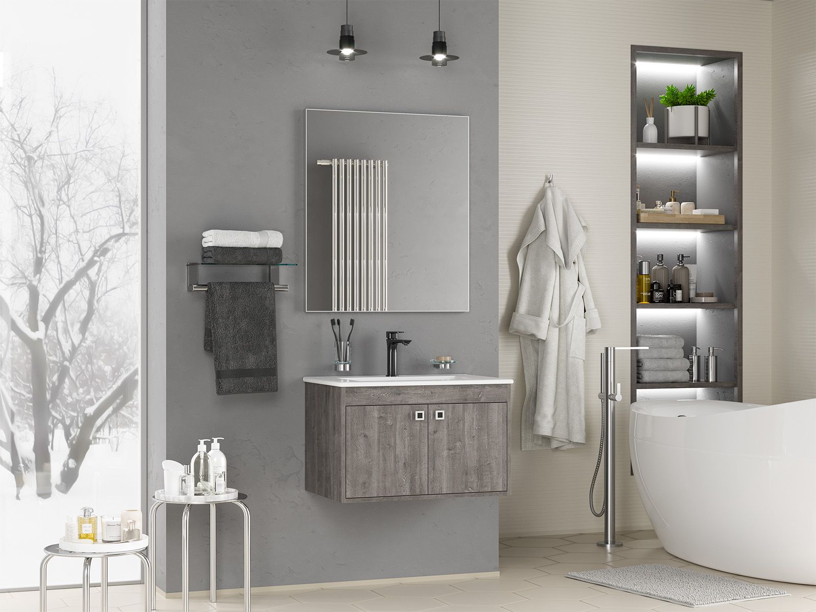 Подвесная тумба в ванную комнату – это не просто элемент мебели, а подлинный акцент в интерьере, который сочетает в себе функциональность и стиль. Она придаёт помещению лёгкость и воздушность, освобождая пространство на полу и создавая иллюзию большего объёма.Функциональные особенности таких тумб варьируются от наличия выдвижных ящиков до встроенных систем хранения, которые помогают организовать пространство ванной комнаты. Важным аспектом является также возможность выбора различных цветовых решений и отделок, что позволяет гармонично вписать тумбу в любой интерьер – от классического до ультрасовременного.С помощью подвесной тумбы ванная комната становится не только более удобной, но и эстетически привлекательной, создавая атмосферу уюта и роскоши.