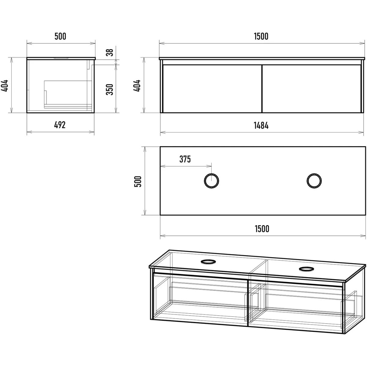 Габариты корпуса тумбы (ШхВхГ): 1484х388х492 мм.