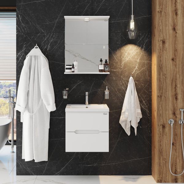 Подвесная тумба для ванной комнаты Onika Айленд 50 сочетает в себе стильный минималистичный дизайн, белую глянцевую поверхность и высочайшее качество исполнения.