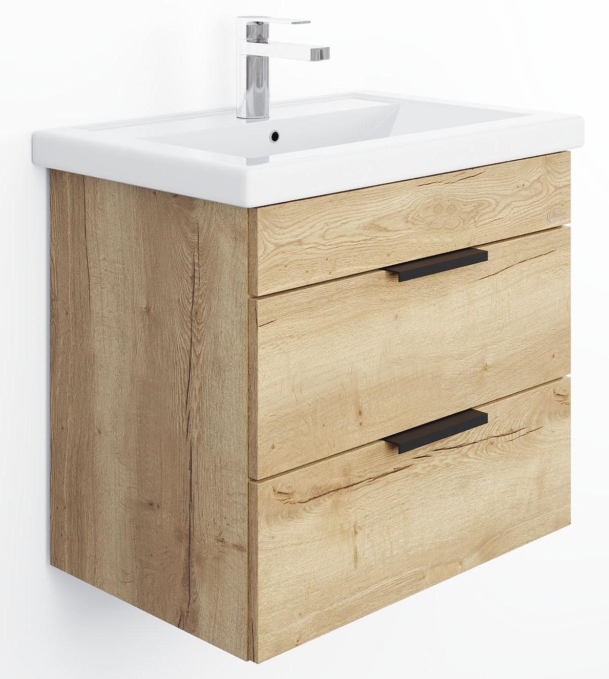 Подвесная тумба для ванной комнаты Onika Легран 70 - это сочетание насыщенного древесного декора и благородства металла: роскошная текстура и натуральный цвет дуба дают теплоту, а матовые металлические ручки добавляют урбанизма и солидности.