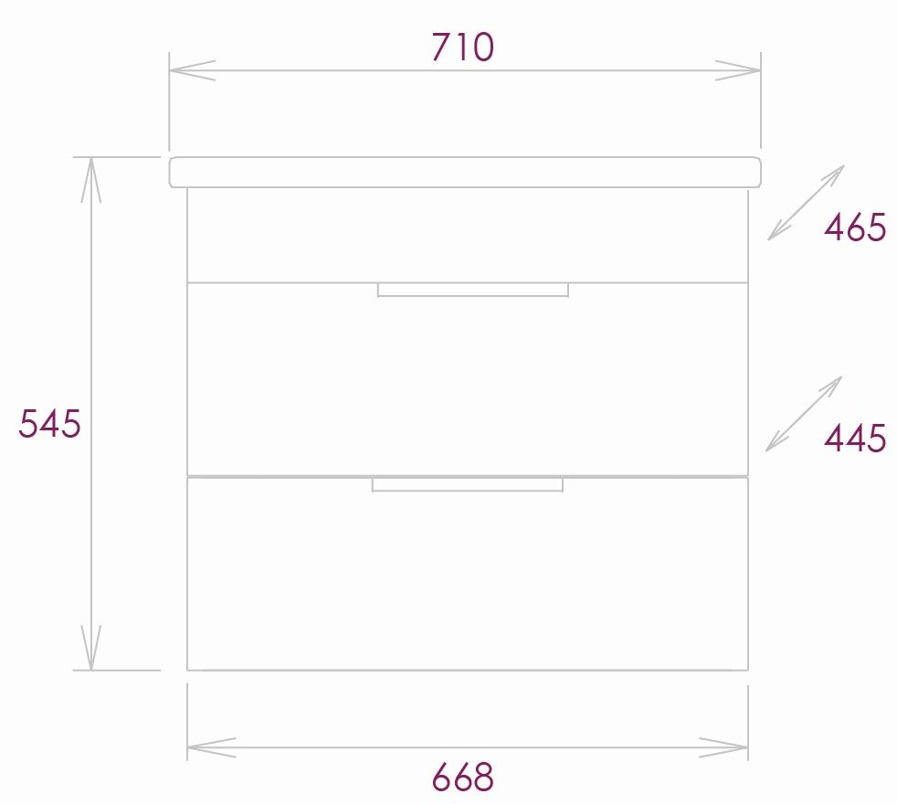 Два ящика тумбы плавно открываются и закрываются благодаря направляющим полного выдвижения с доводчиками. Нижний ящик предназначен для больших предметов, а верхний, имеющий удобную систему организации пространства, - для мелких аксессуаров.