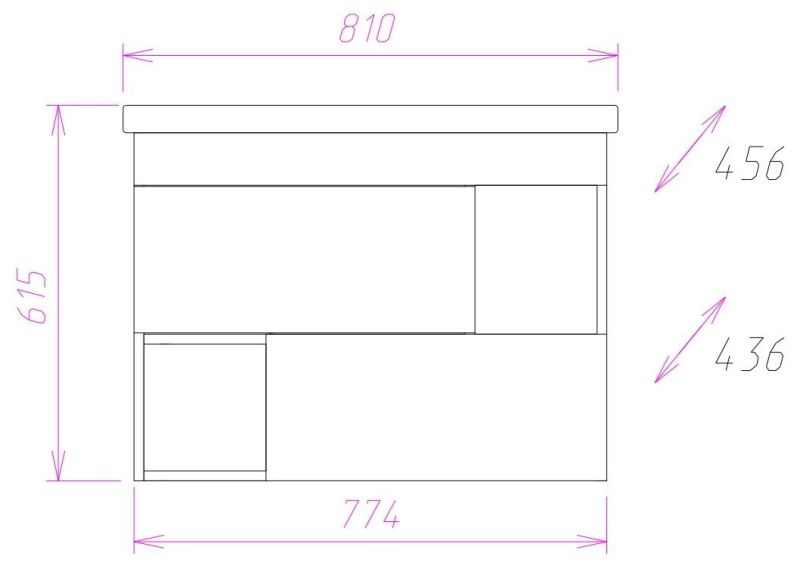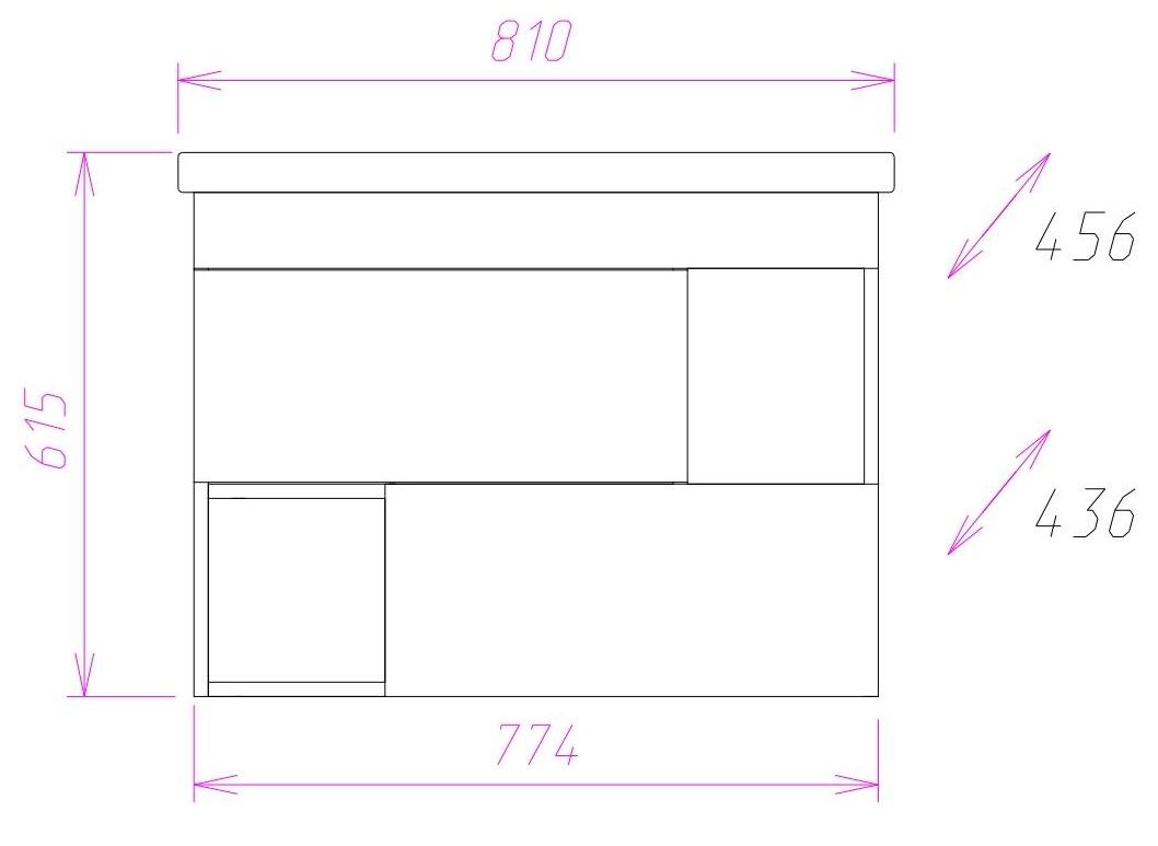 Размеры тумбы без учета раковины 77x44x57 cм.