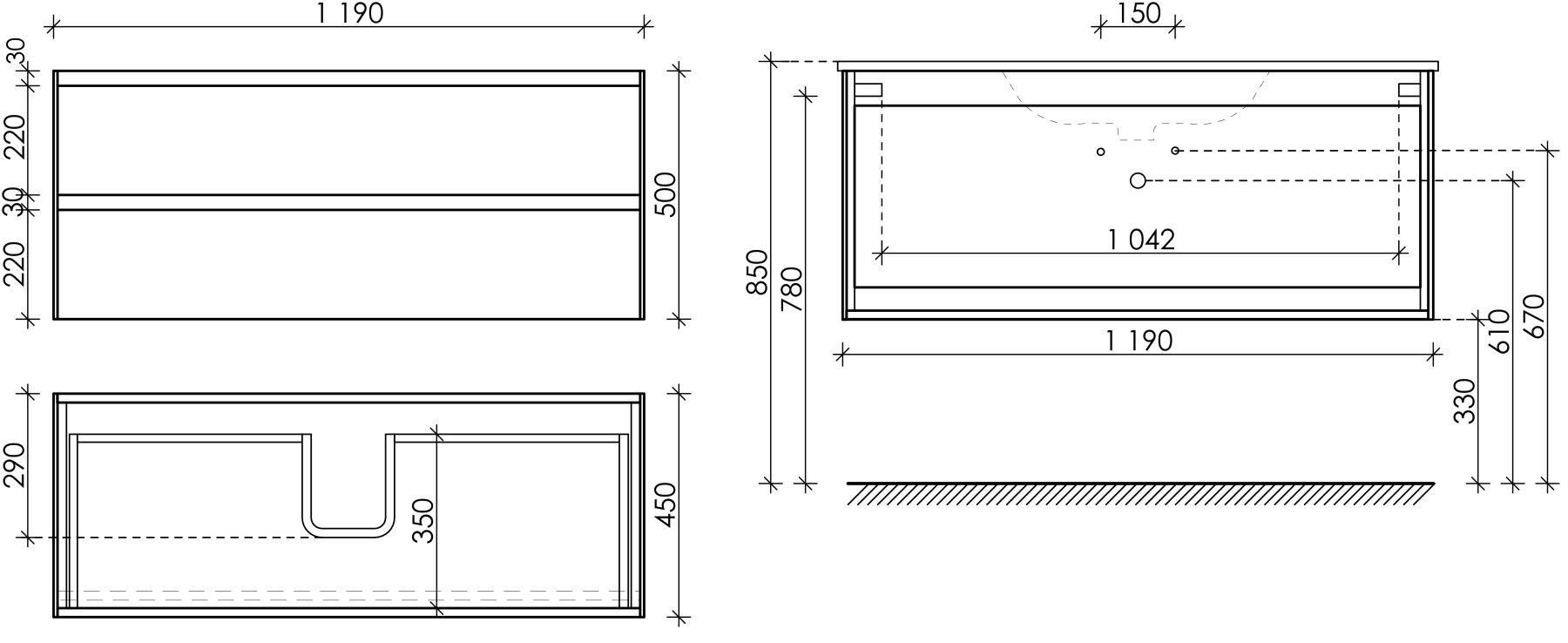 • Размер: Ш119 x Г45 x В50 см