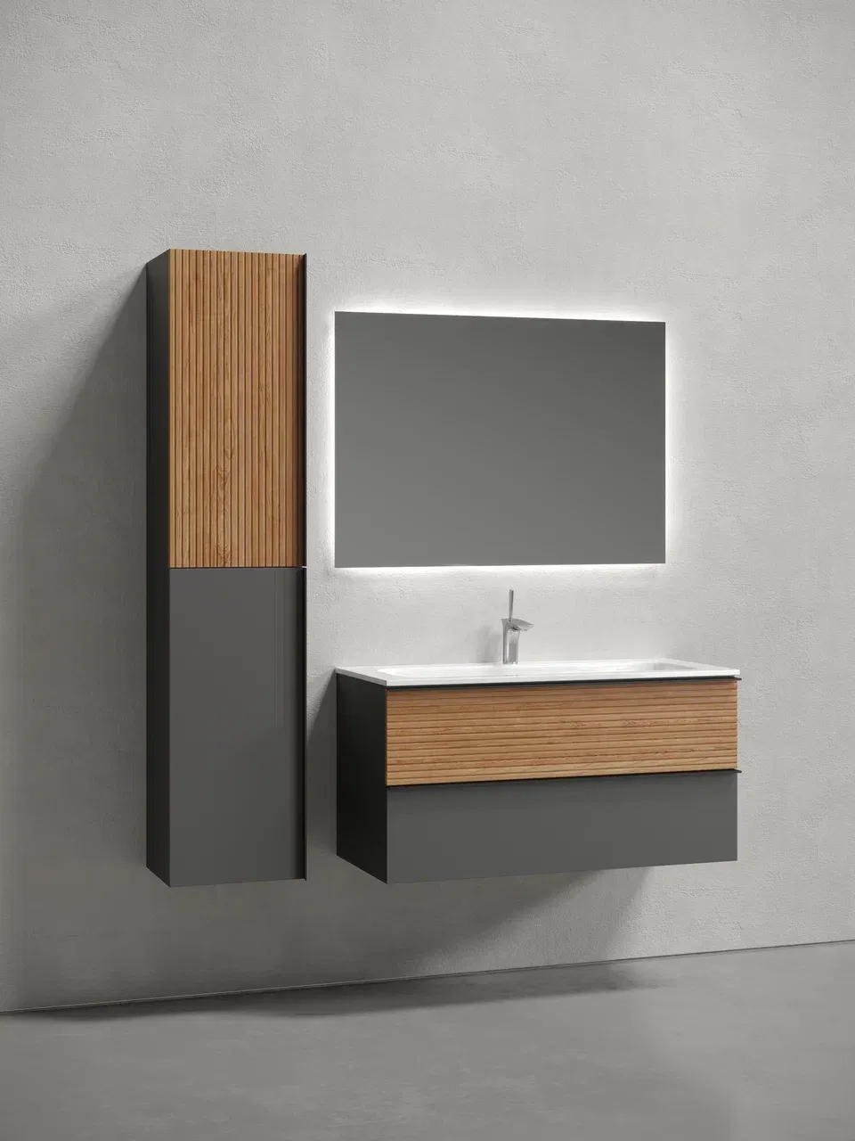 Подвесная тумба под раковину Sancos Delta DL100GR 100см дуб красный/графит купить