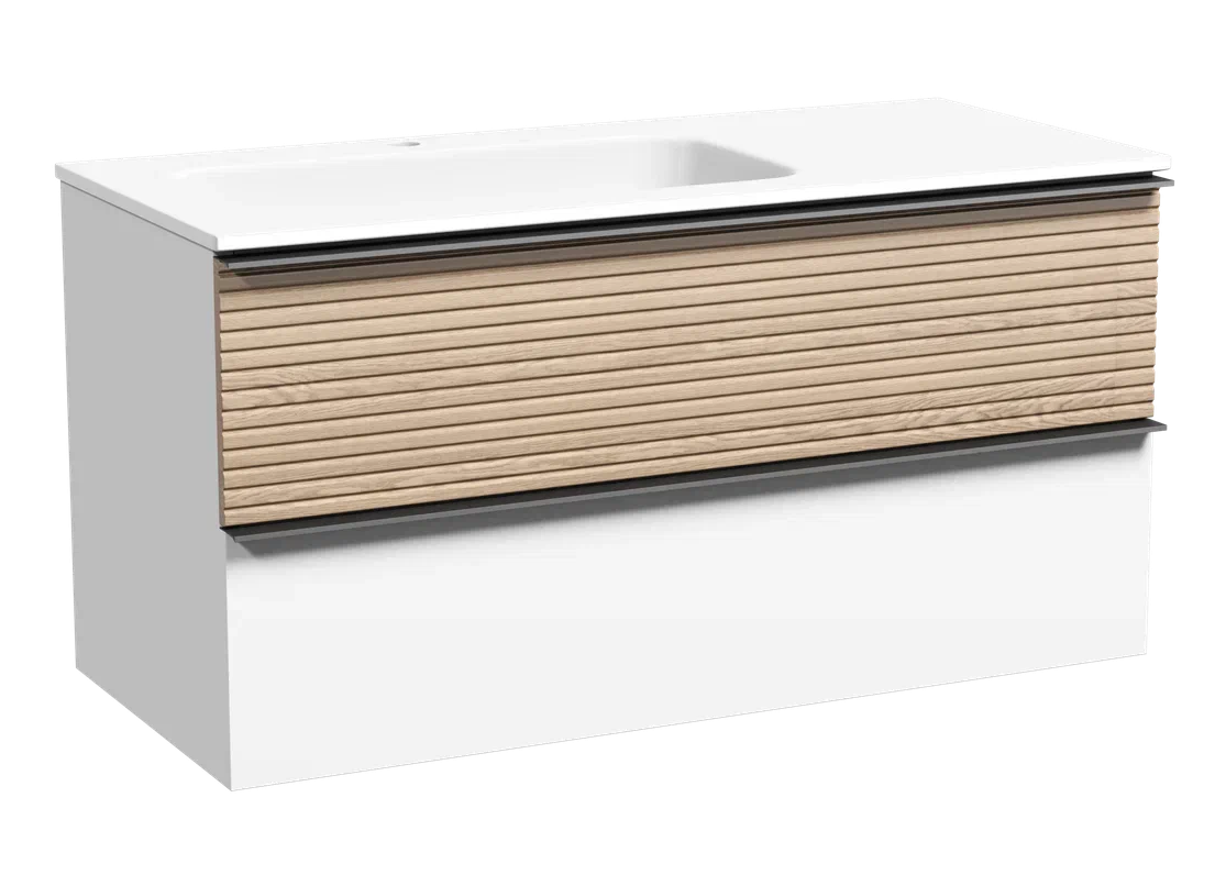 Подвесная тумба под раковину Sancos Delta DL100LW левая 100см дуб светлый/белый купить