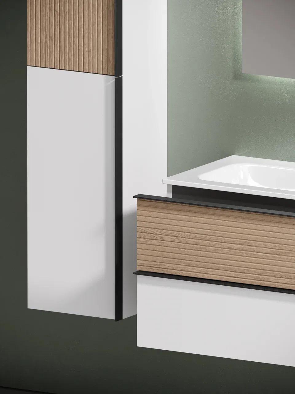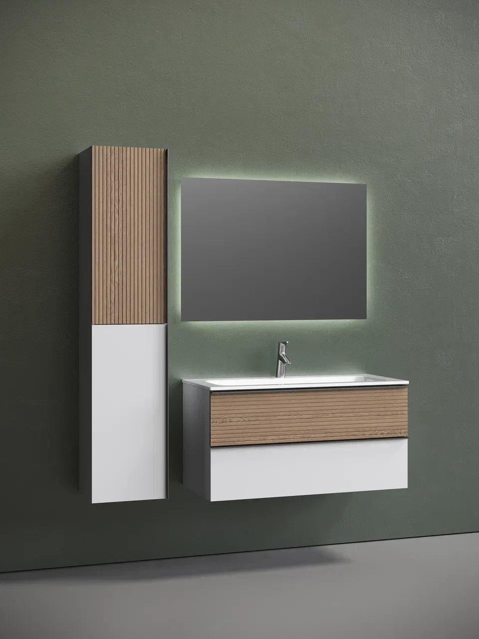 Подвесная тумба под раковину Sancos Delta DL100W 100см дуб светлый/белый