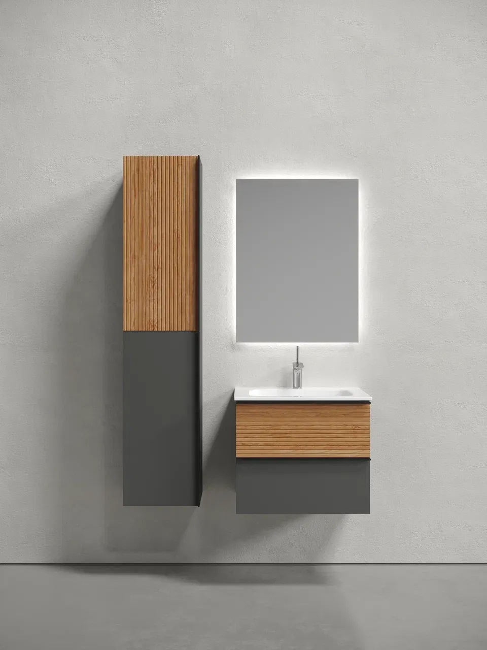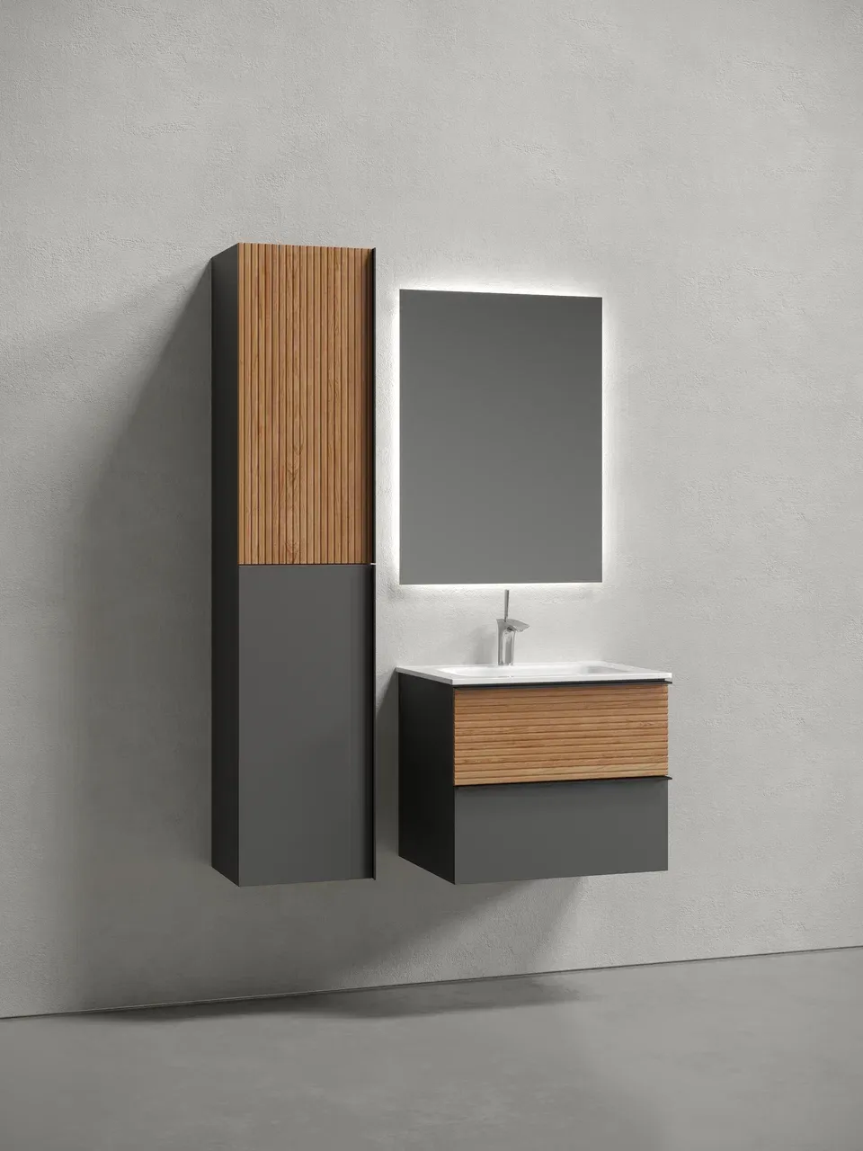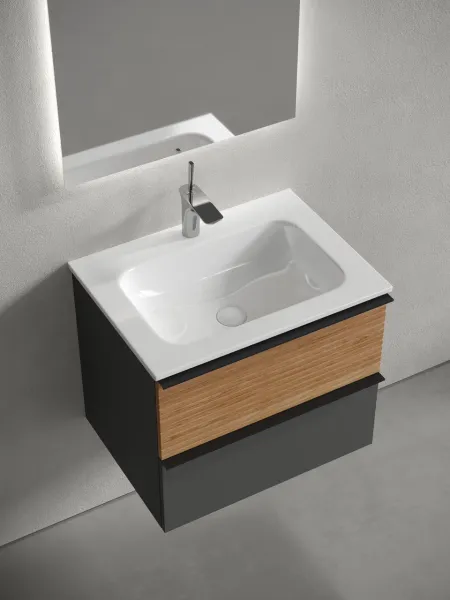 Подвесная тумба под раковину Sancos Delta DL60GR 60см дуб красный/графит