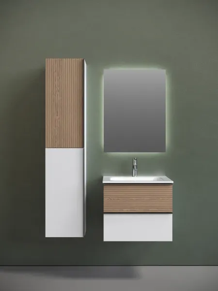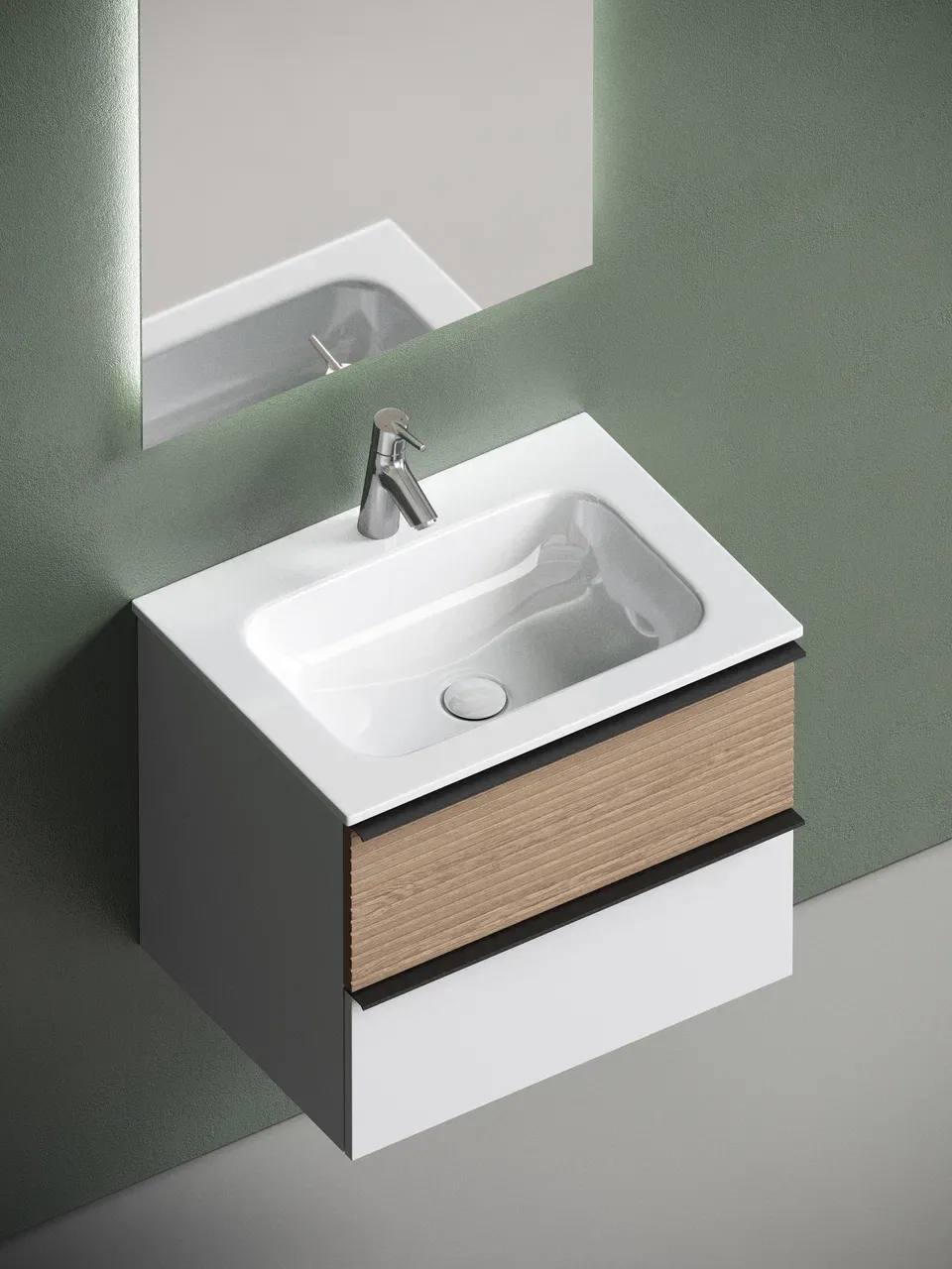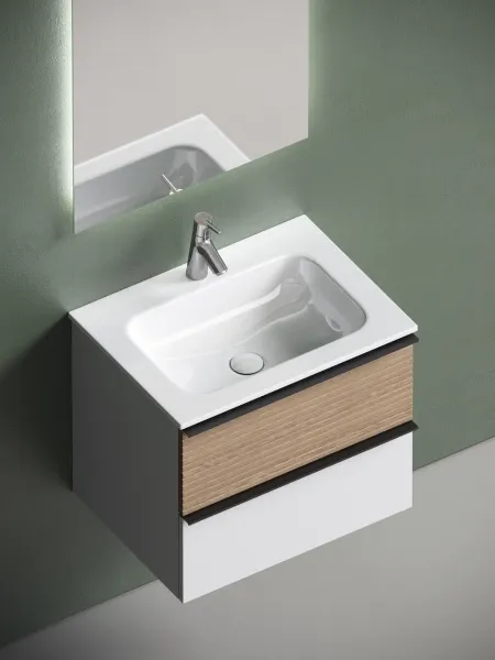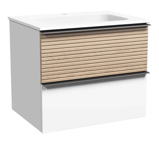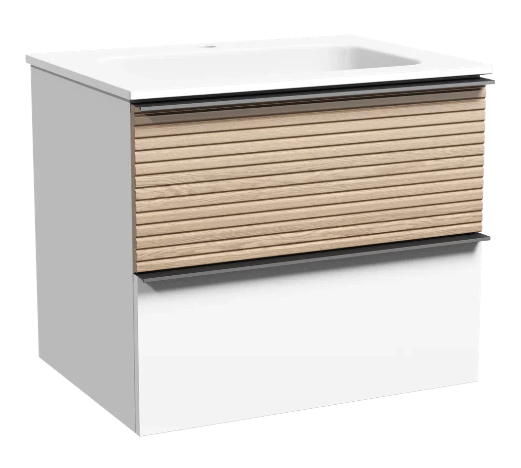 Подвесная тумба под раковину Sancos Delta DL60W 60см дуб светлый/белый