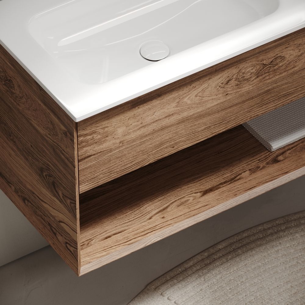 Тумба подвесная SANCOS Marmi 1.0 левая, 995х445х520 левая, c одним ящиком оснащенным доводчиками скрытого монтажа с системой Soft close (плавного закрывания) и открытой нишей, c фрезерованной ручкой по всей длине фасада, дуб чарльстон, арт.MR1.0100LECH