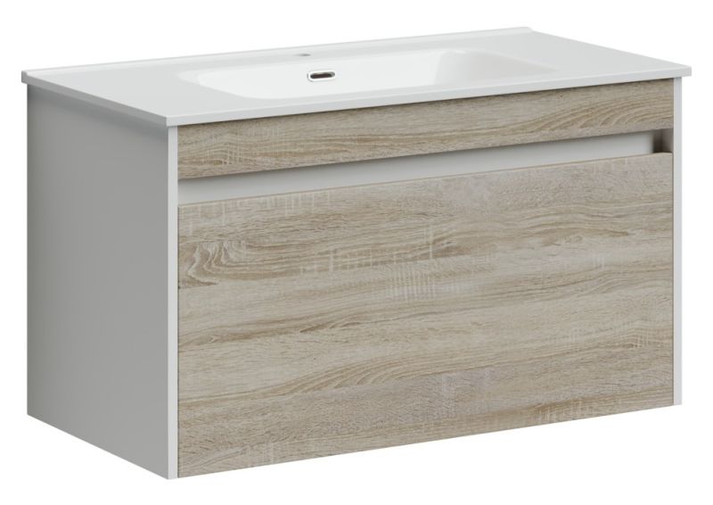 Подвесная тумба под раковину Sancos Smart SM90E 90см дуб бардолино/белый