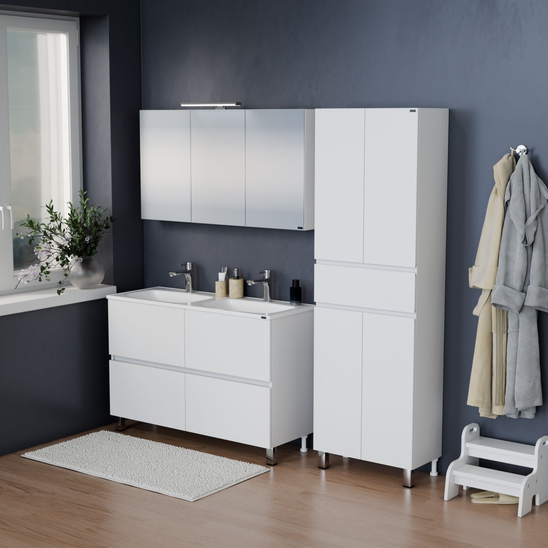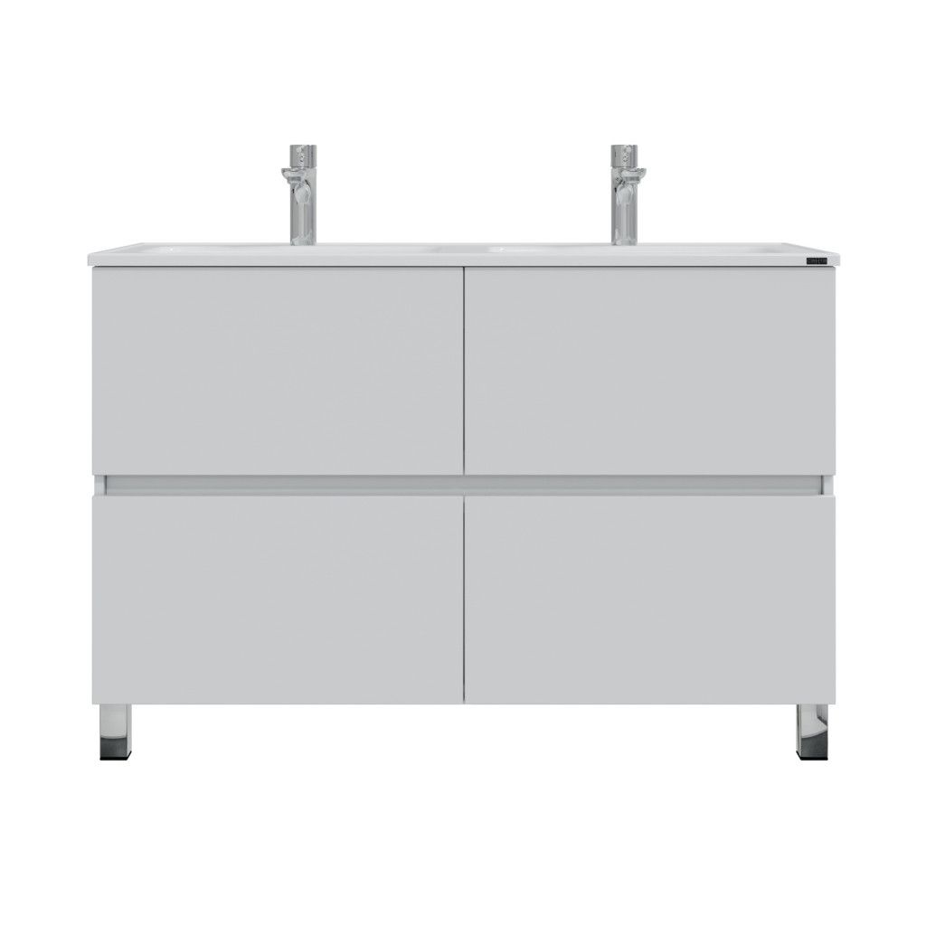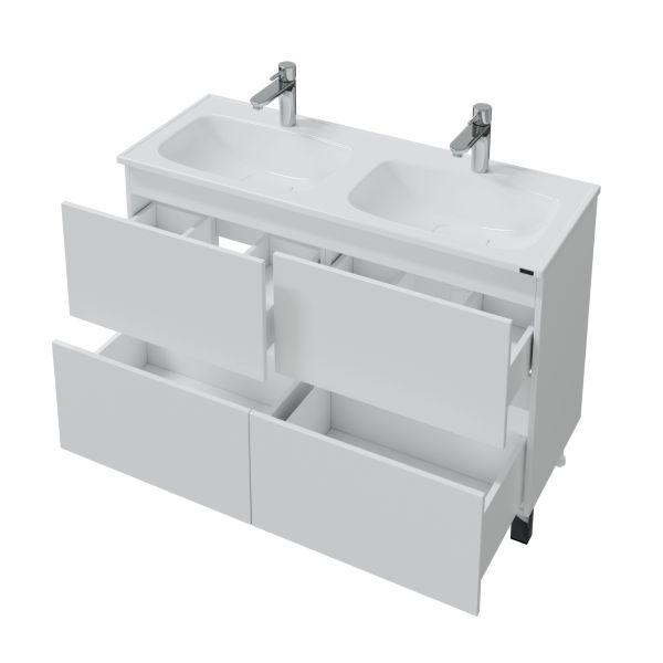 Комплектация: ножка хром - 2 шт., ножка пластик 2 шт., петли с плавным закрыванием - 1 шт., направляющие с доводчиком - 2 шт Напольная тумба Санта Марс 120 под раковину Венера 120 с двойной чашей — это не только стильный, но и функциональный элемент для вашей ванной комнаты. Изготовленная из высококачественного ЛДСП, она прослужит долго, не теряя своей привлекательности. Фасады тумбы покрыты глянцевой эмалью, что придает им свежий и современный вид. Два ящика, снабженные доводчиками, обеспечат комфортное использование и удобное хранение.