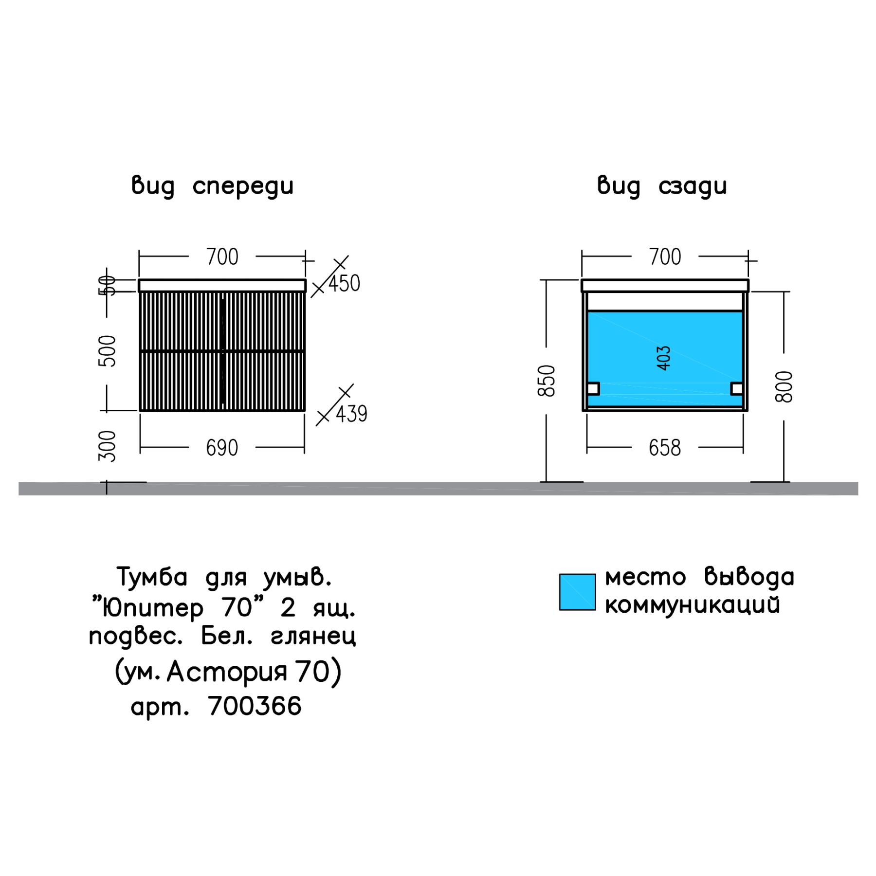Тумба под раковину СанТа Юпитер 70 700366 подвесная.