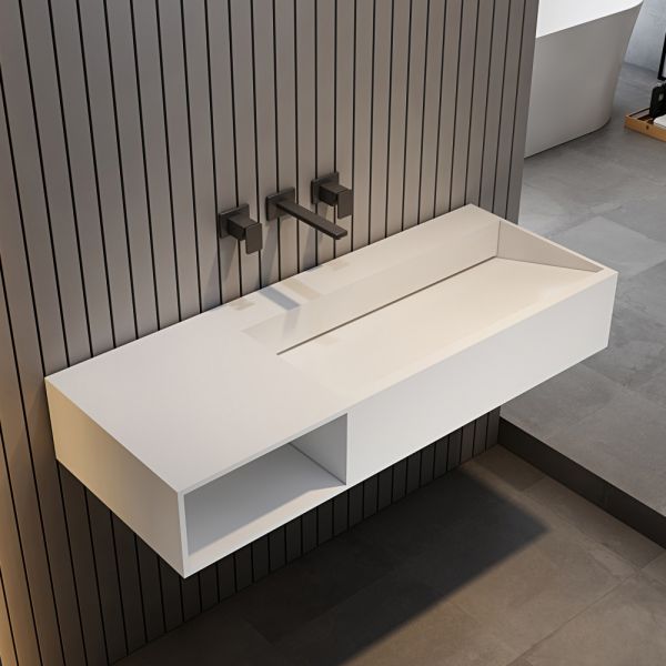 Подвесная тумба с раковиной ABBER Stein AS2640-1.0 L левая 100см белый матовый