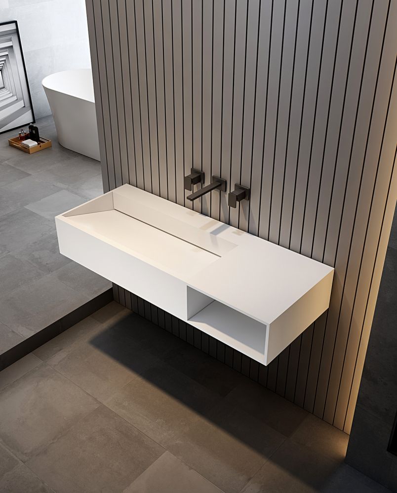 Подвесная тумба с раковиной ABBER Stein AS2640L 120см белый матовый купить