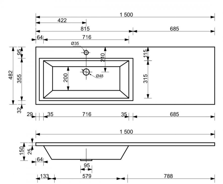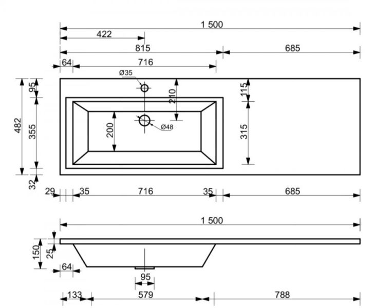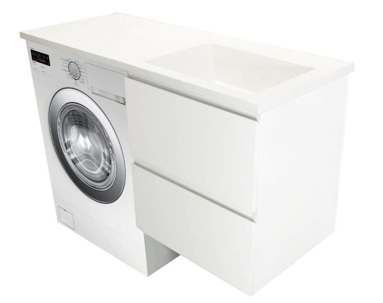 Коллекция мебели для ванной комнаты Dallas Luxe покоряет своей удивительной простой и функциональностью. Стильная лаконичная тумба, укомплектована раковиной из литьевого мрамора с удобной чашей. Стиральная машина устанавливается под столешницей, за счет чего экономит место в ванной комнате. В тумбе имеются два ящика. Нижн