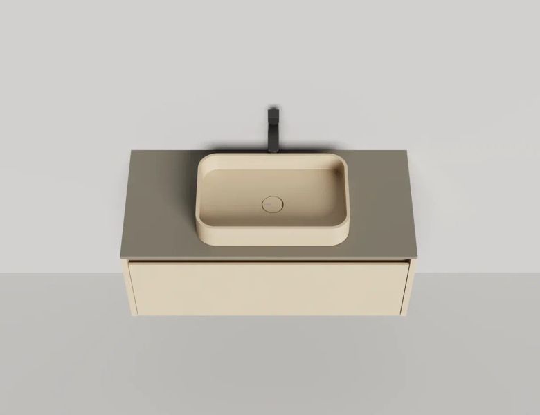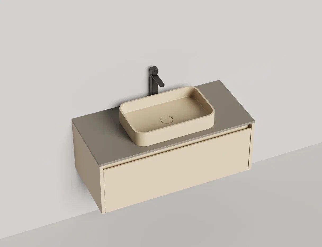• Тумба и столешница из материала S-Stone в сборе (накладные раковины укомплектованы донным клапаном и поставляются в отдельной коробке)