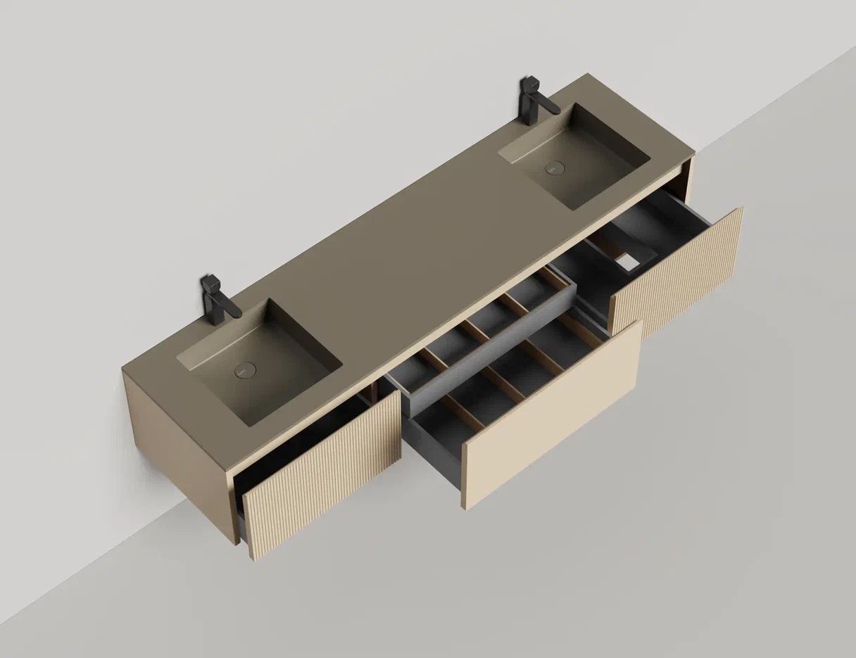 Подвесная тумба Salini Domino 27D120DINF 200см эмаль с фрезеровкой для двух встраиваемых раковин