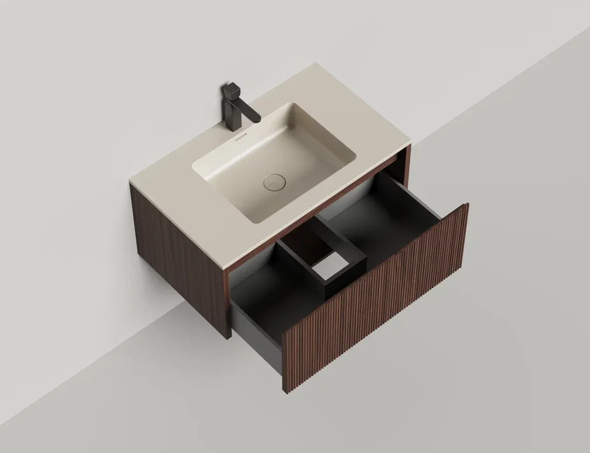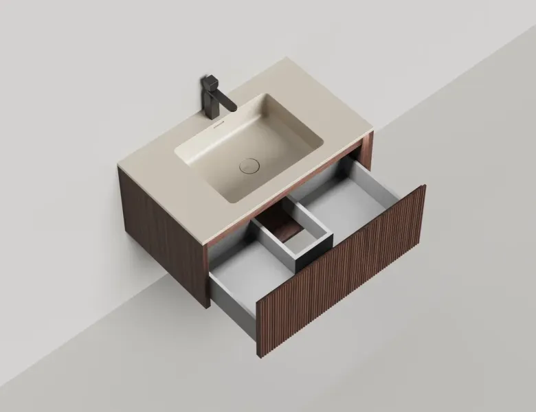 Наполнение для тумбы включает: блоки ячеек для тумб, коврики и комплект внутренней подсветки, которые помогут организовать пространство и создать более удобный доступ к вещам.Тумба DOMINO, дополненная столешницей COSTA из каменного литья S-Stone, гарантирует практичность и простоту ухода.