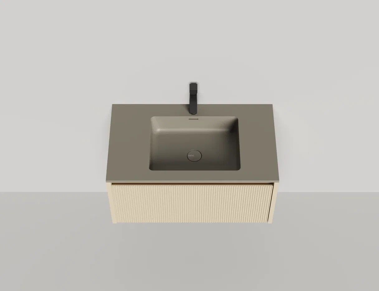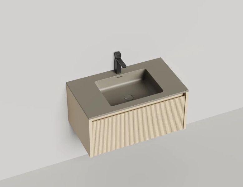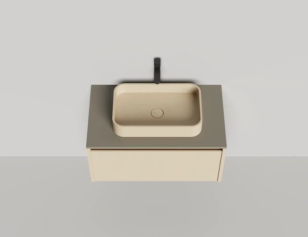 • Тумба и столешница из материала S-Stone в сборе (накладные раковины укомплектованы донным клапаном и поставляются в отдельной коробке)