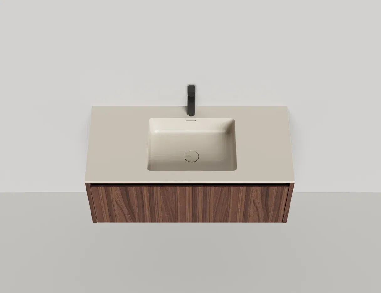 - Тумба и столешница из материала S-Stone в сборе (накладные раковины укомплектованы донным клапаном и поставляются в отдельной коробке)