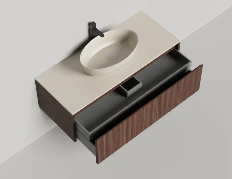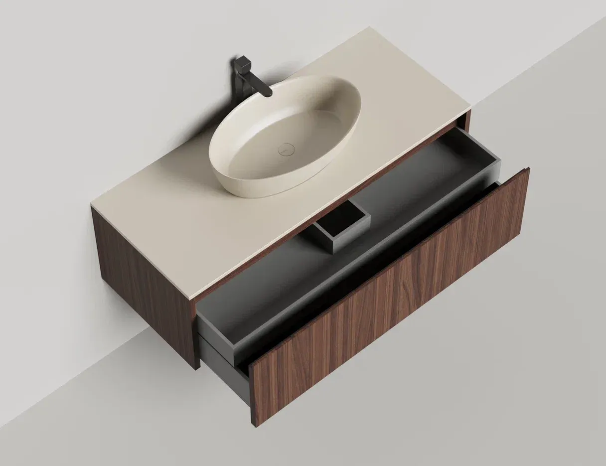 Наполнение для тумбы включает: блоки ячеек для тумб, коврики и комплект внутренней подсветки, которые помогут организовать пространство и создать более удобный доступ к вещам.Тумба DOMINO, дополненная столешницей COSTA из каменного литья S-Stone, гарантирует практичность и простоту ухода.