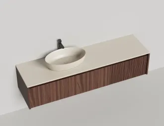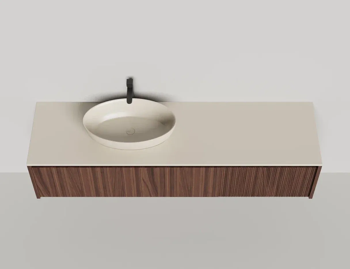 • Тумба и столешница из материала S-Stone в сборе (накладные раковины укомплектованы донным клапаном и поставляются в отдельной коробке)
