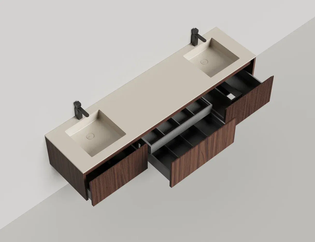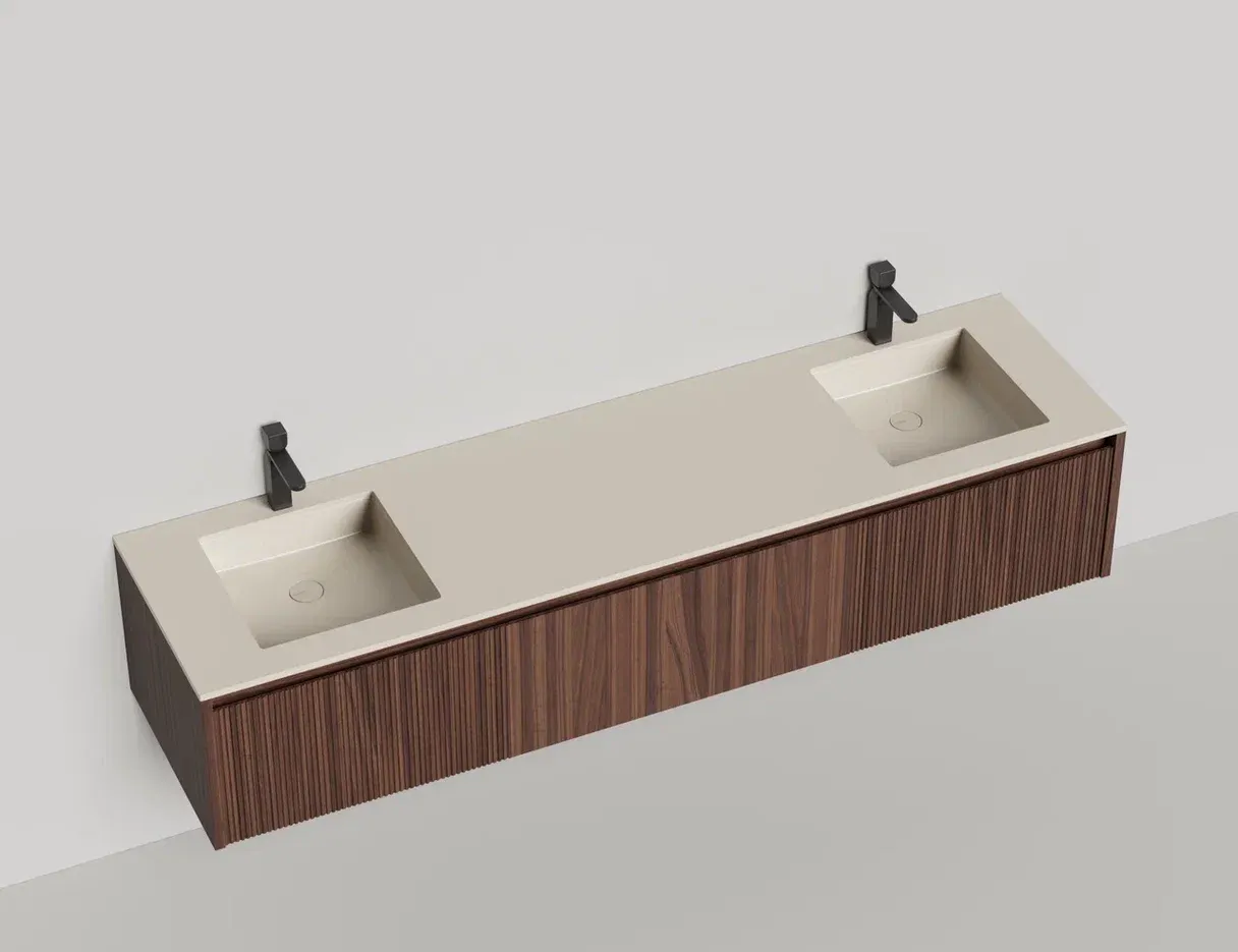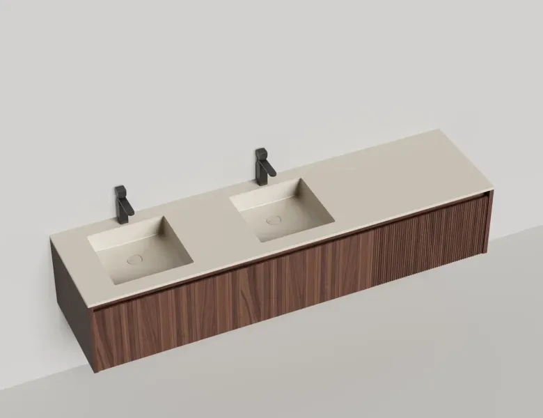 Подвесная тумба Salini Domino 27D220DINF 200см шпон с фрезеровкой для двух встраиваемых раковин