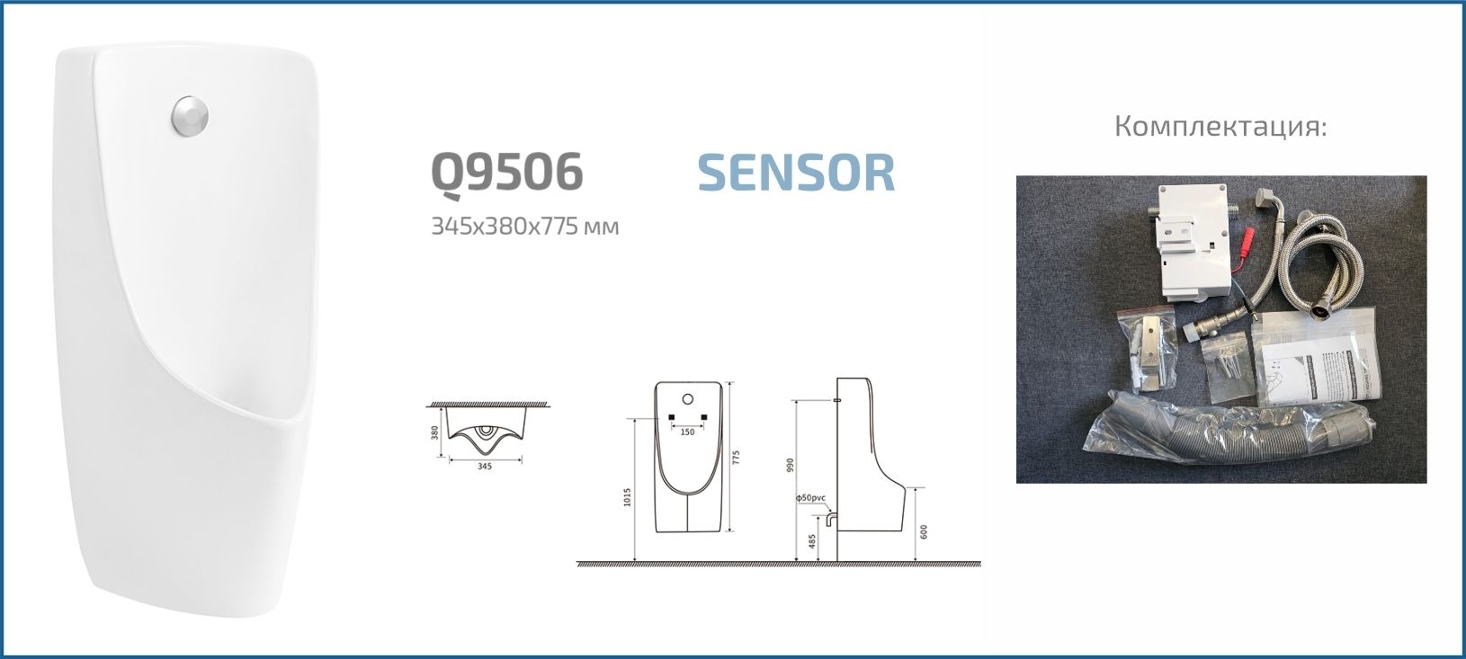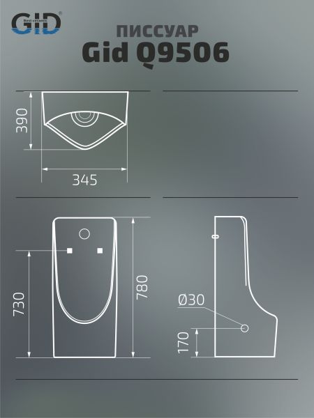 Publico — коллекция писсуаров, выполненная в строгом и лаконичном дизайне. Испанское качество и европейские стандарты соответствуют самым высоким требованиям эксплуатации. Подвесной сенсорный писсуар GiD Q9506 изготовлен из высококачественной керамики с белоснежным глянцевым покрытием, что придает ему современный и элегантный вид. Благодаря бесконтактному управлению устройство обеспечивает гигиеничность и удобство использования, автоматически активируя смыв при обнаружении пользователя. Скрытый подвод воды и настенный монтаж позволяют экономить пространство и облегчают уборку, делая эту модель идеальной для современных ванных комнат и общественных туалетов.