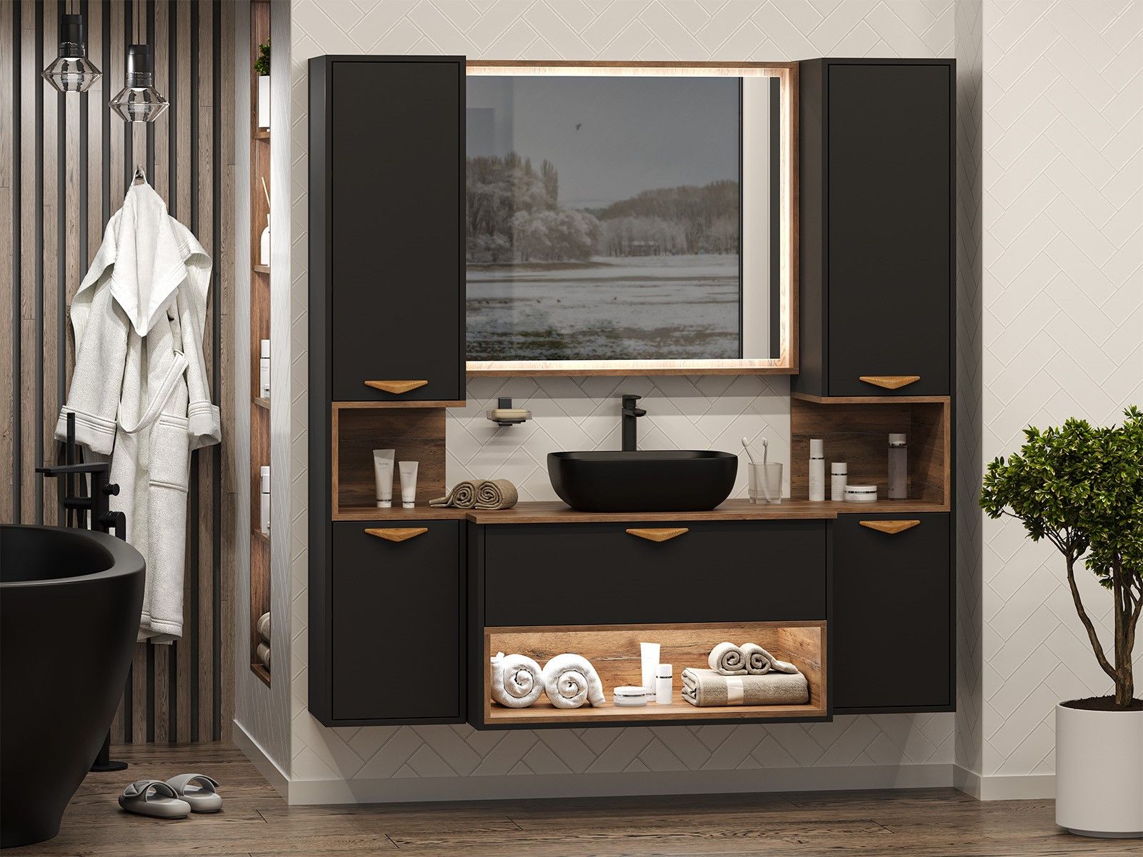 Шкаф-пенал для ванной комнаты – это стильное решение, которое гармонично вписывается в современный интерьер. Его элегантные линии и аккуратные формы создают атмосферу чистоты и порядка, что особенно важно в таком интимном пространстве. Изготовленный из качественных влагостойких материалов, этот шкаф обеспечивает долговечность и надежность, даже в условиях повышенной влажности.Основное преимущество шкаф-пенала заключается в его вместительности. Удобные полки и ящики позволяют организовать пространство и разместить все необходимое: от косметики до бытовых принадлежностей. Каждая деталь продумана для удобства использования, что делает утренние и вечерние ритуалы более приятными.Будь то строгий минимализм или уютный скандинавский стиль, шкаф-пенал станет акцентом, который подчеркивает индивидуальность вашего пространства. Не упустите возможность преобразить свою ванную комнату, добавив в нее этот элегантный и практичный элемент.