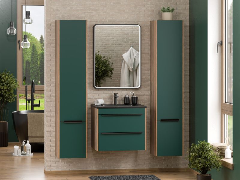 Подвесной шкаф - пенал Brevita Greenwood GRE-05035-08Л левый 35см зелёный/дуб Галифакс олово