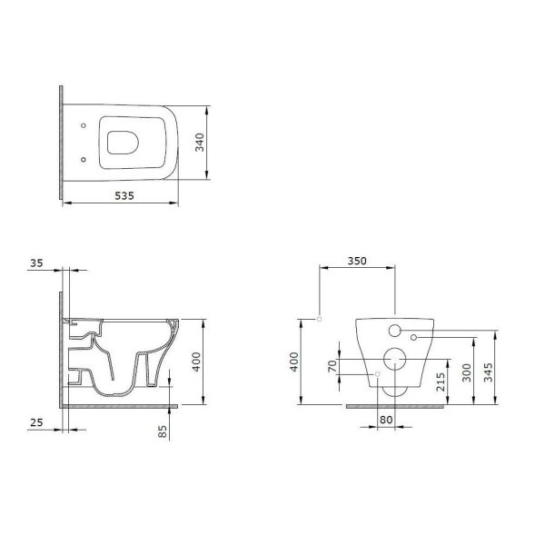 • Прилегание унитаза к стене: