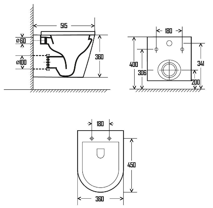 • Прилегание унитаза к стене: