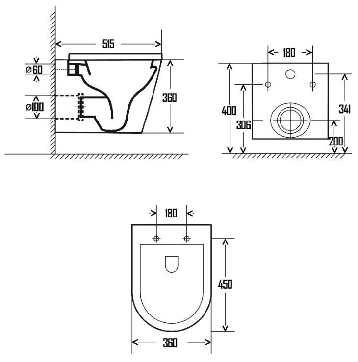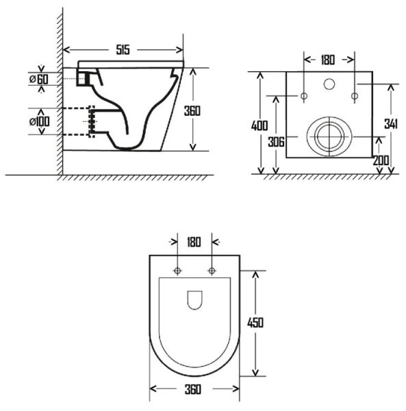 • Прилегание унитаза к стене: