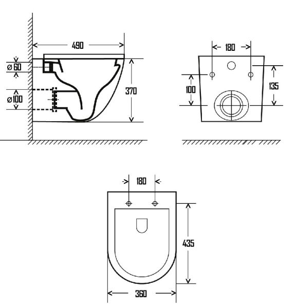 • Прилегание унитаза к стене:
