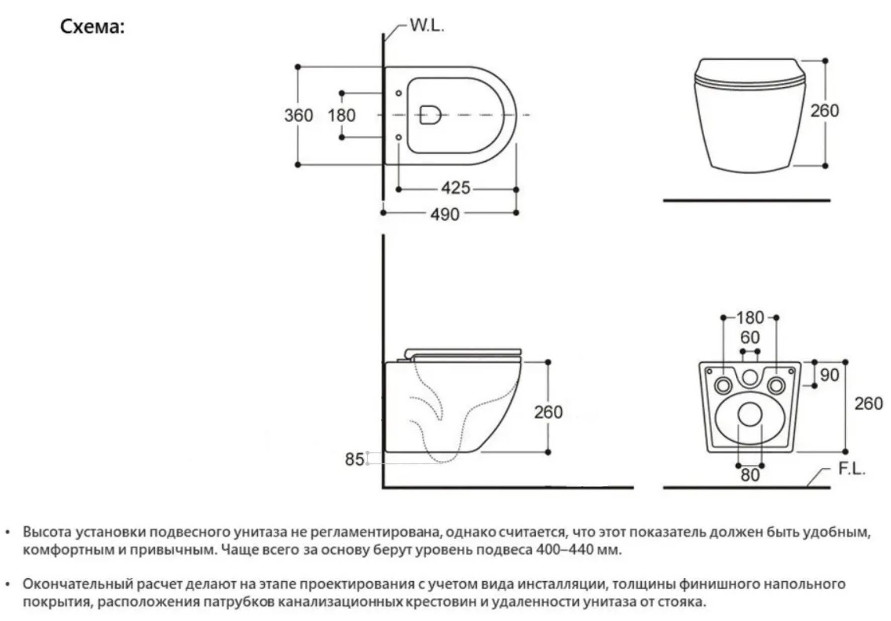 Подвесной безободковый унитаз с системой скрытого монтажа, крышкой-сидением из дюропласта с функцией soft-close и quick release.