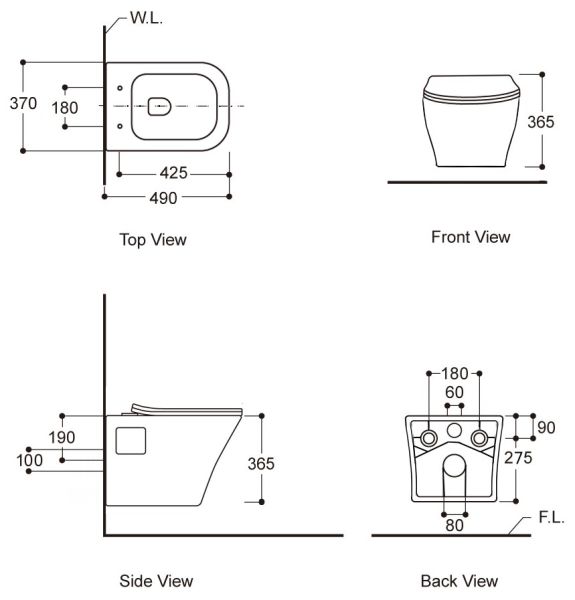 • Прилегание унитаза к стене: